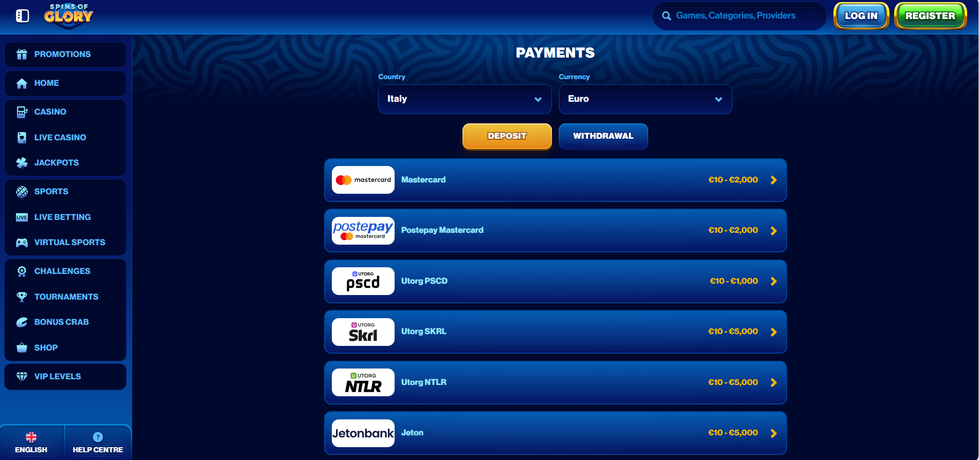I tested four different deposit methods and two withdrawals during my six weeks with Spins of Glory. Crypto options worked better than traditional payment methods. Available Payment OptionsTraditional: Visa, Mastercard, Bank Transfer, Jeton, MiFinity, Skrill, Neteller Crypto: Bitcoin, Ethereum, Litecoin, Ripple, USDT (TRC20/ERC20/BEP20), USD Coin, Bitcoin Cash, DOGE, Cardano Minimum deposit: €10 for most methods, €30-60 for some crypto. Maximum deposit: €3,000-€5,000 depending on payment method. My Deposit Experience€60 via Visa—instant, no fees. €100 via USDT (TRC20)—confirmed in 3 minutes, zero fees. This was the fastest option I tested. €50 via Bitcoin—took 22 minutes for blockchain confirmations. Withdrawal Reality CheckOfficial time: 3 business days. Real experience: 2-5 days depending on when you request. VIP Withdrawal Limits: